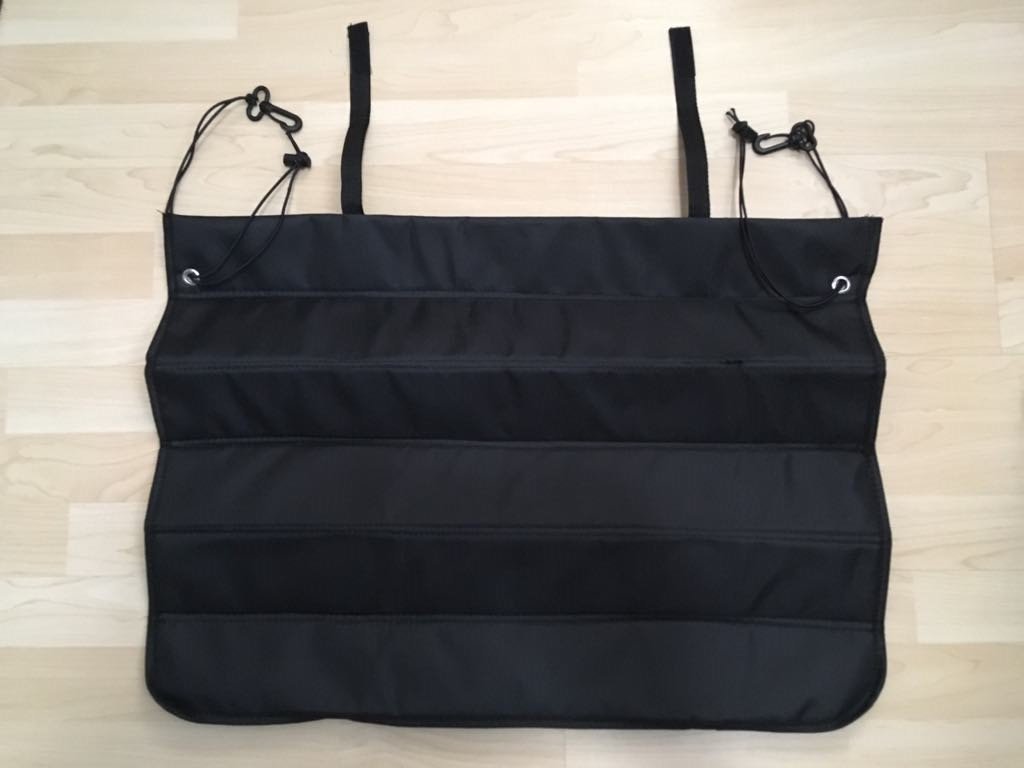 Odolný materiál voči poškriabaniu, ľahko umývateľný, suchý zips po celej šírke prehozu a upevňovacie šnúrky po stranách na ľahké uchytenie v batožinovom priestore.