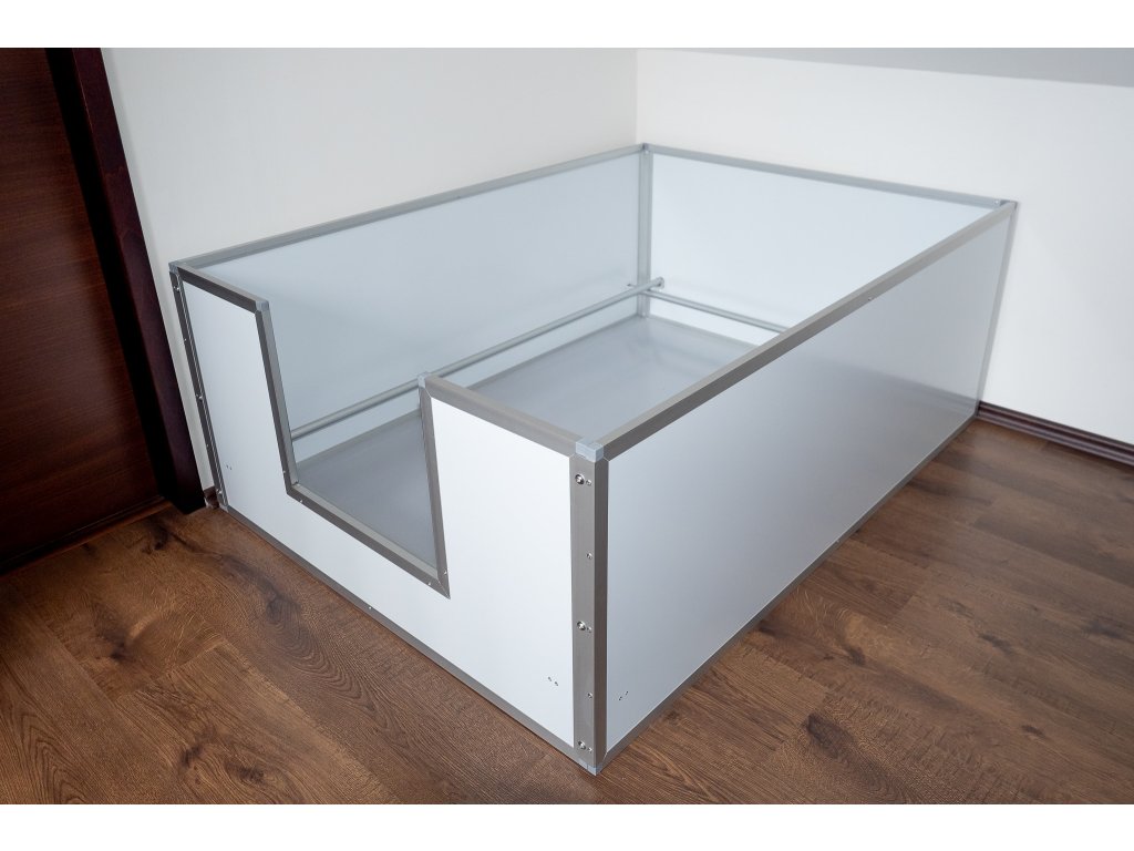 Vo vnútri boxu sú bezpečnostné zábradlia, ktoré slúžia ako zábrana proti zaľahnutiu šteniatok sučkou, dajú sa jednoduchým spôsobom nasadiť a keď ich už netreba, ľahko sa vyberú.