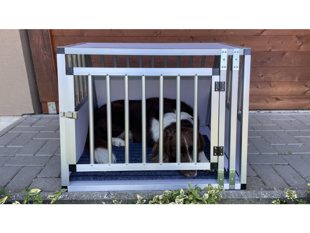 Hliníkový jednobox je určený pre menšie a stredné plemená psov. Má využitie aj v interiéri ako oddychové miesto pre psíka.
